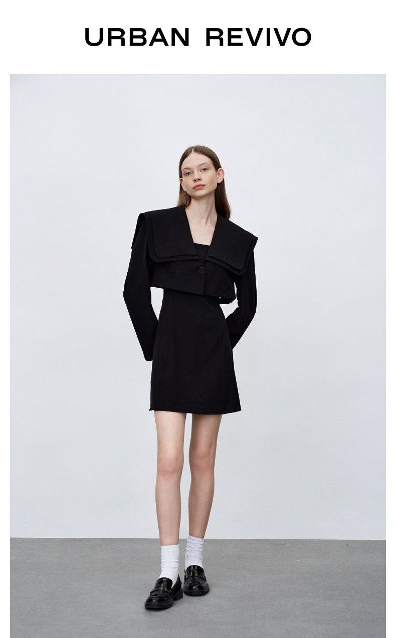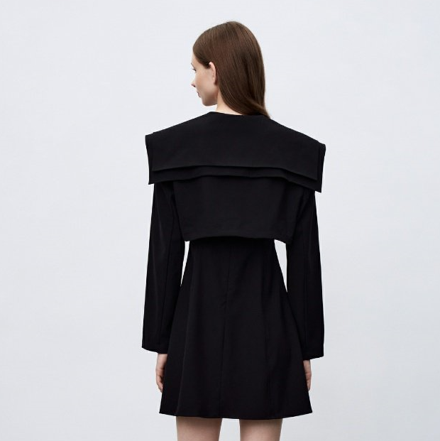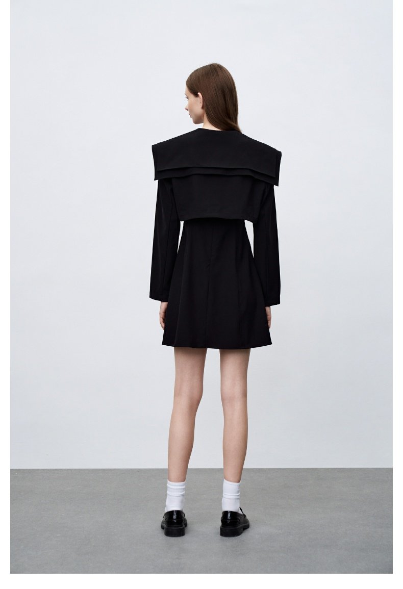 冬季新款女装复古风少女叠层翻领套装连衣裙